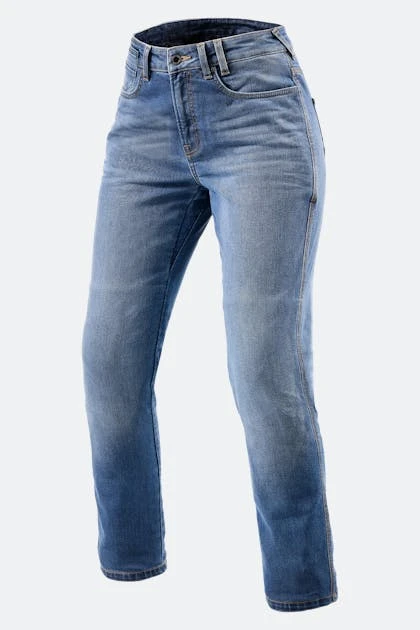 I Victoria 2 SF di Rev’it! sono jeans da moto specifici per donna per la guida urbana, con vestibilità slim e vita alta. Il denim Stretch CORDURA® è combinato con il nuovo e migliorato rinforzo PWR|Shield, una maglia altamente resistente all’abrasione che ti offre tutto il comfort di cui hai bisogno, con il beneficio aggiunto della tranquillità in caso un’uscita possa terminare in una maniera meno fortunata. Hanno protezioni sulle ginocchia che non si notano durante la guida grazie alla loro costruzione ultrasottile. Usa i jeans Victoria 2 in combinazione con la cintura Rev’It! Safeway è potrai unirli a qualsiasi giacca Rev’It! utilizzando la cerniera corta.